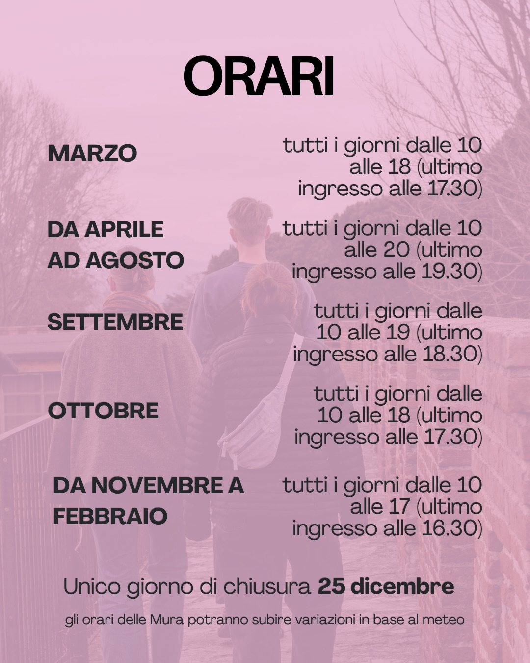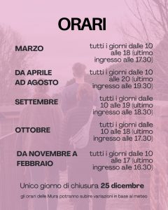 We recommend arriving at least one hour before closing time to fully enjoy the walk and the view of the city. With the free “Mura di Pisa” app, available on iOS and Android, your visit is enriched with content, insights and animations.