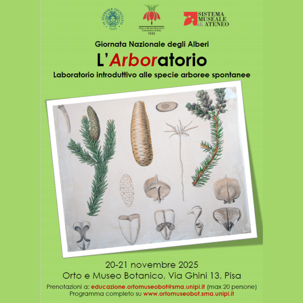 The Botanical Garden and Museum of the University of Pisa organise the Arboratorio, a two-day event on 20 and 21 November: an introductory lesson, a guided walk among the specimens of the Botanical Garden and an excursion to the Coltano Estate to recognise trees. Info on the page