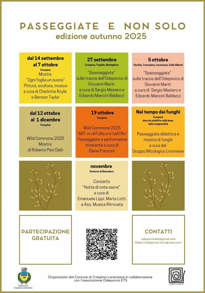 The Municipality, in collaboration with the Odeporica Association, is organising a calendar of free walking tours in the Crespina and Lorenzana. New nature, cultural and artistic itineraries, including night-time tours, with expert guides and local scholars, all enriched by entertainment events and scientific talks on flora and fauna.