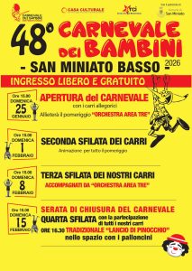 The 48th edition of the Children’s Carnival returns to San Miniato Basso in the outdoor area of the Cultural Centre.