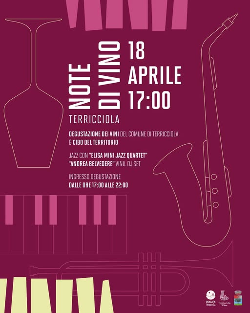 Wine Tasting: authentic flavors, jazz vibes, and sunsets in the historic center of Terricciola on April 18 from 5:00 PM to 10:00 PM. An evening of flavors, music, and tradition! Come discover the wines of the Terricciola region paired with local food and music!