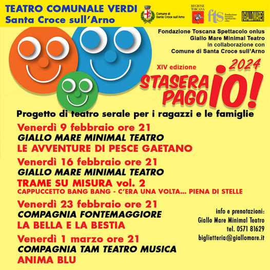 The Theatre “G. Verdi”organizes every year “Stasera Pago Io”, with programs for children, teenagers, and families. Five theatre shows starting at 9.00 pm