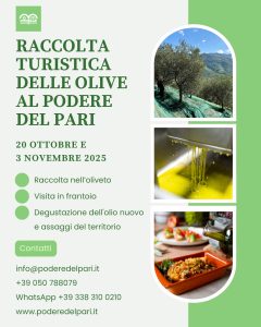 This experience complements the usual walks through the olive groves, guided tastings and discovery tours of the Calci area organised by Podere Del Pari farm.