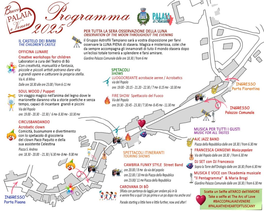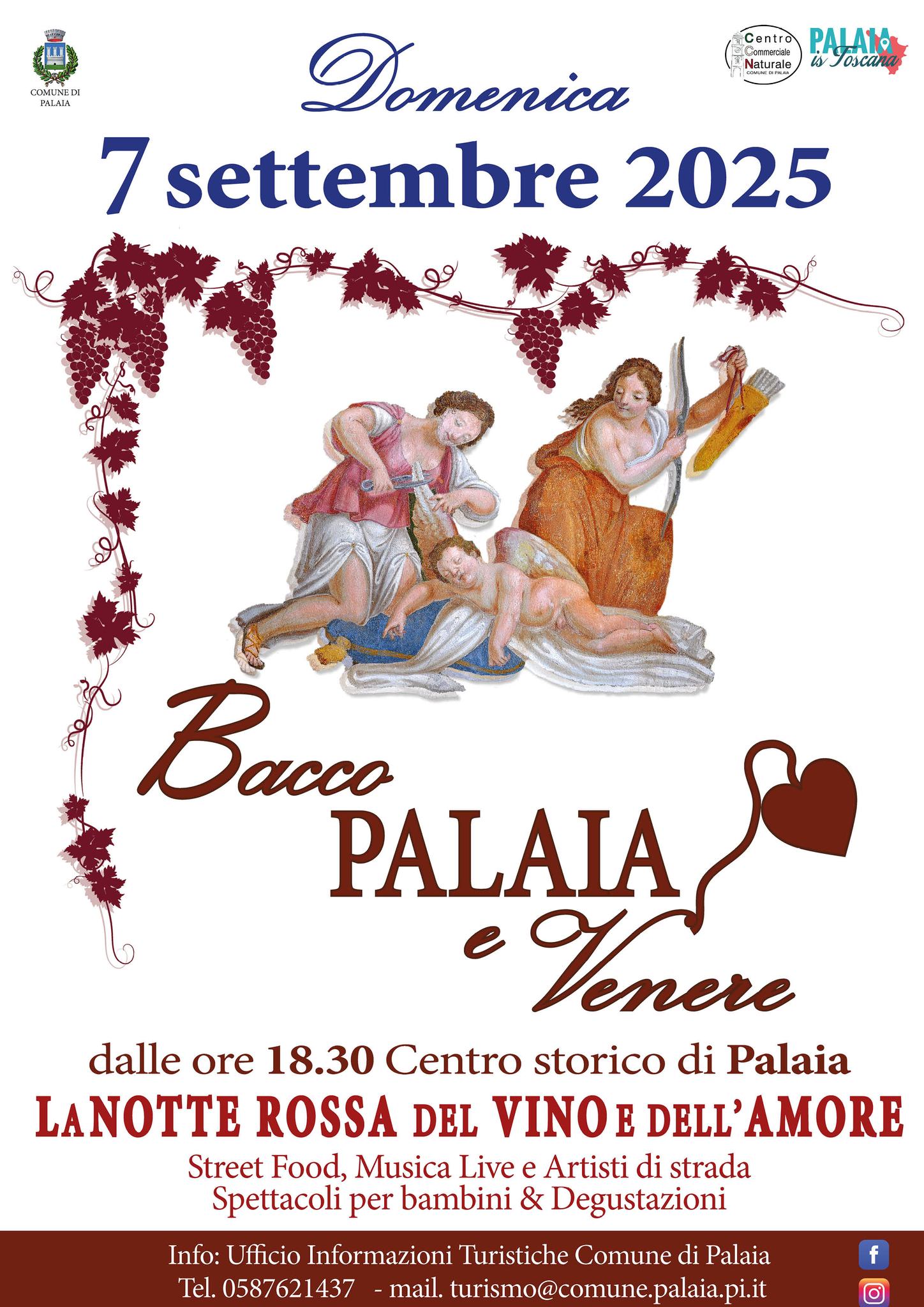 “Bacco Palaia e Venere” si svolge domenica 7 settembre. Giunto alla 9° edizione, diventa La Notte Rossa del Vino e dell’Amore.