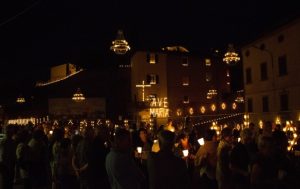 Oggi, il percorso per le via del borgo è scandito con lampadari e circa 7000 lumini che, invece di essere portati da uomini come nel Medioevo, sono deposti in bicchierini di vetro ed appesi in bianchi telai lignei strutturati in modo da esaltare i profili degli edifici, con scritte di preghiera e disegni geometrici che decorano le pareti.