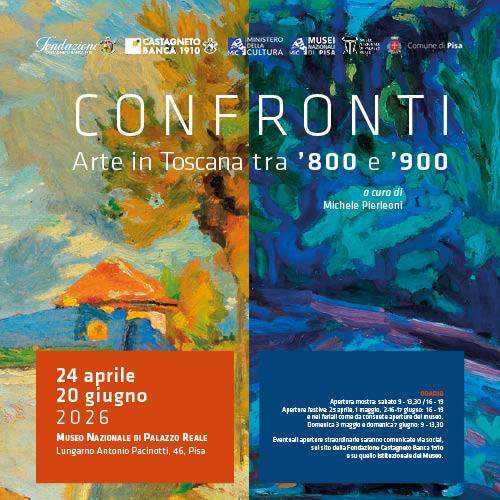 Dal 24 aprile al 20 giugno al Museo Nazionale di Palazzo Reale, la mostra “Confronti”, che mette in relazione pittura e scultura della collezione di Palazzo Reale con opere provenienti dalla Fondazione Castagneto Banca 1910, per raccontare l’arte toscana tra la fine dell’Ottocento e la prima metà del Novecento, con particolare attenzione alla scena livornese.
