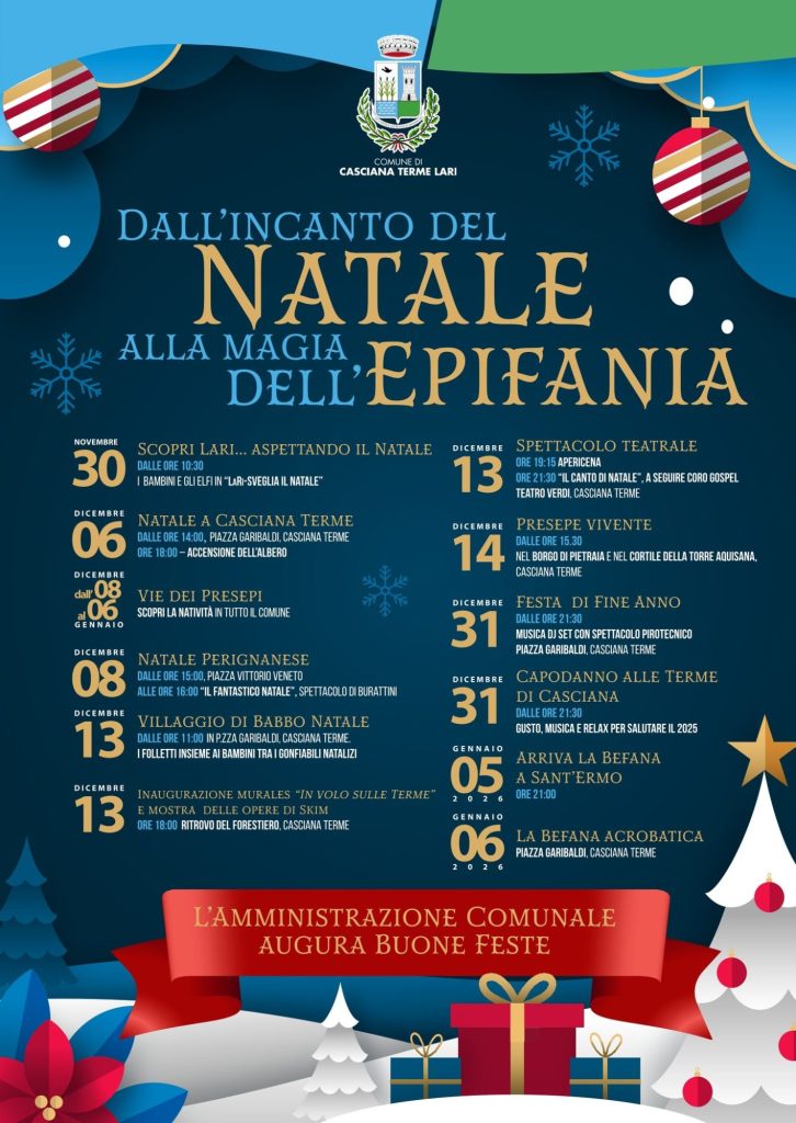 Casciana Terme e Lari, hanno strutturato un’offerta unica di iniziative per una “città diffusa del Natale”.