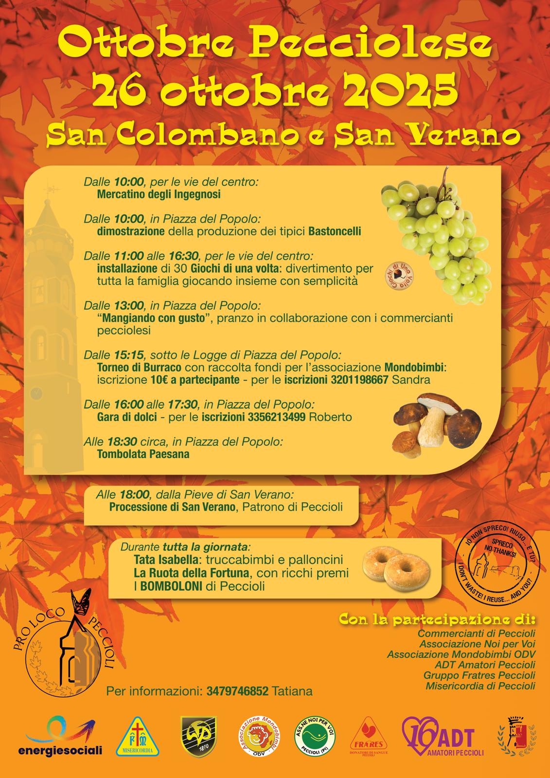 Torna l‘Ottobre Pecciolese! Domenica 26 ottobre si festeggiano i due santi protettori del paese, San Colombano e San Verano, al quale è dedicata l’omonima pieve nella piazza principale.