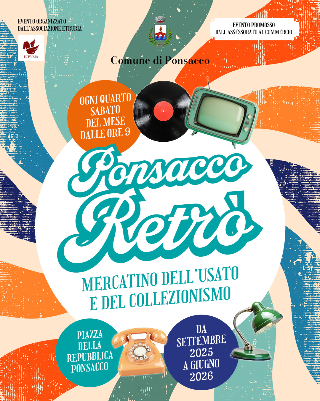 Ogni quarto sabato del mese, a partire dalle ore 9:00, Piazza della Repubblica nel cuore di Ponsacco si animerà con espositori e appassionati di usato, modernariato e collezionismo.