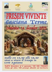 A Casciana Terme, domenica 14 dicembre, l’appuntamento del Presepe vivente giunge alla 20ma edizione.