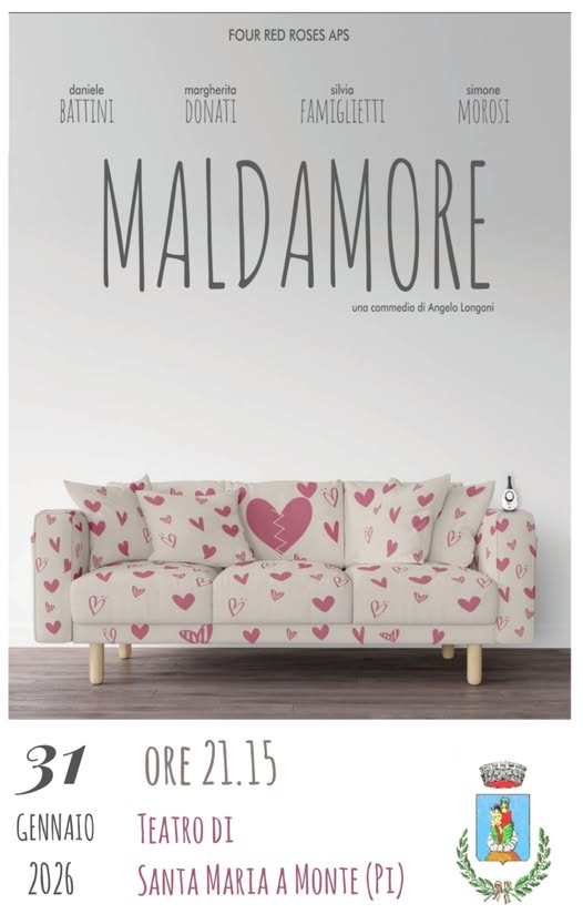 Lo spettacolo ad ingresso gratuito, vede in scena la Compagnia Teatrale Four red Roses Aps con “Maldamore”, una commedia di Angelo Longoni.
