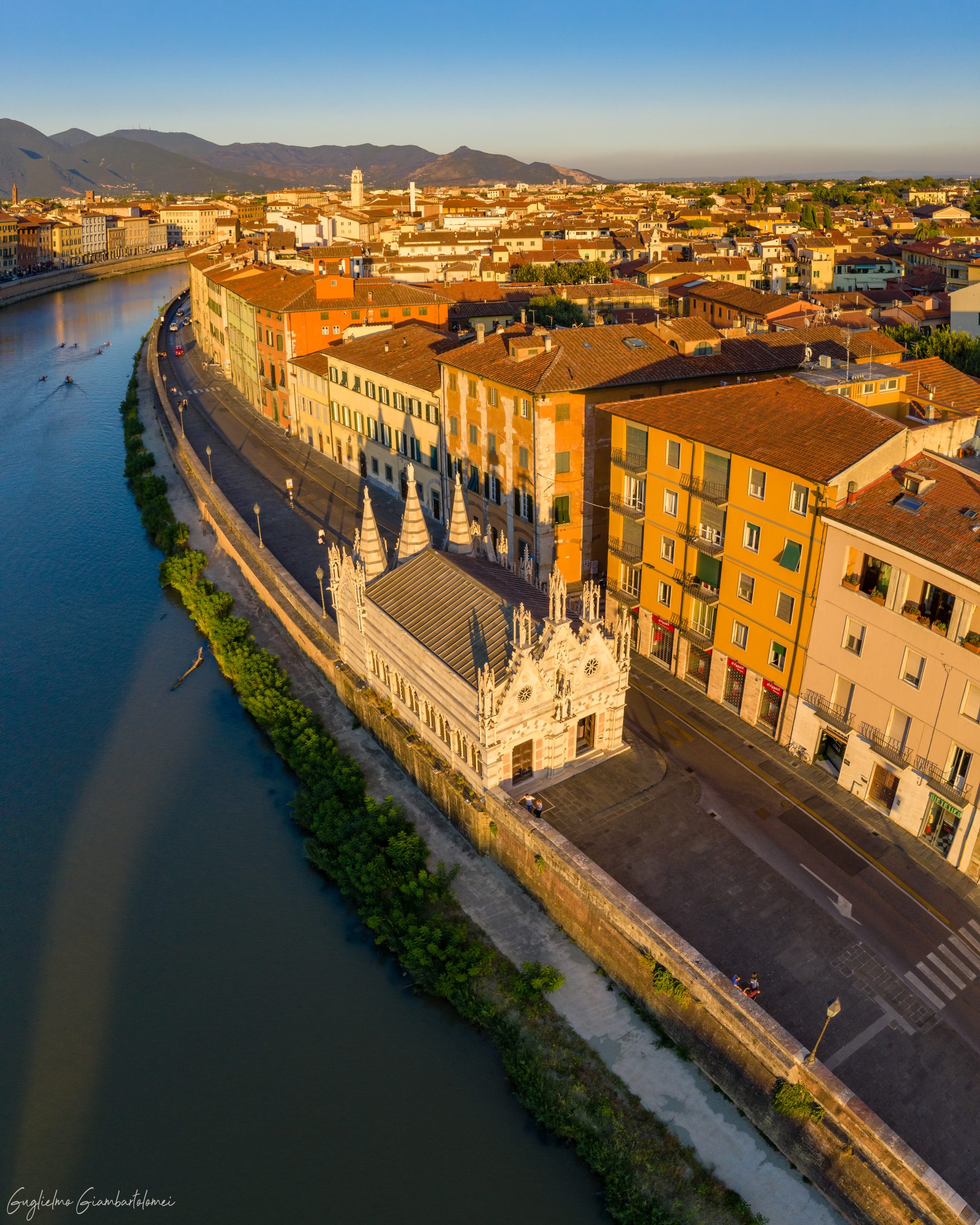 Sulla riva opposta del fiume, osserviamo la Torre Guelfa e gli Arsenali Medicei, sede del nuovo Museo delle Navi Antiche di Pisa.